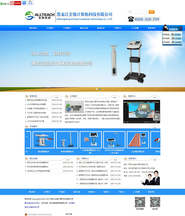 黑龍江全教計算機科技有限公司是一家集生產(chǎn)、研發(fā)為一體的科技型發(fā)展企業(yè),長期以來一直致力于開發(fā)學(xué)校體育教學(xué)管理系統(tǒng)中使用的各種軟件和硬件產(chǎn)品,在體育教育領(lǐng)域積累了大量實踐經(jīng)驗,立志為各類教育主管部門和學(xué)校提供更多更好的智能化集成管理系統(tǒng)。全教公司擁有一支優(yōu)秀、年輕、自強不息的團隊,一直以優(yōu)良的品質(zhì)和熱情的服務(wù)深受用戶的好評,根據(jù)客戶要求量身定做多種跨行業(yè)軟件,產(chǎn)品覆蓋了高等院校,教育局、部隊等多方面。公司主導(dǎo)產(chǎn)品:體育用手持機,體育管理云系統(tǒng)(網(wǎng)上選課管理、理論課考試管理、早操管理、課外鍛煉管理、健康測試管理,俱樂部管理等)、體育中考系統(tǒng)、體質(zhì)健康測試儀器,運動會管理,各類非接觸性IC卡以及學(xué)生體質(zhì)健康測試使用的全套智能型和簡易型測試器材。